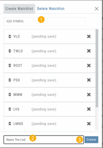 1. Under ‘Create Watchlist’, enter symbols to automatically add